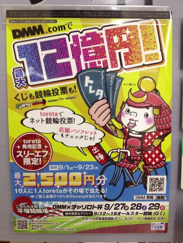 プリペイド情報が記載されたレシートにtoreta番号が記載されていますので、DMM×チャリロトにログインして、チャージページよりtoreta番号を入力してチャージ完了です。