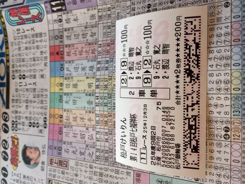 10Rまで的中4Rありましたが、安めばかりで回収率も上がらずでした(^◇^;) でも!最終で2単をゲットしてちょいマイナスでゴール^_−☆ まくり届かずでしたが、気分よく帰って来られました!